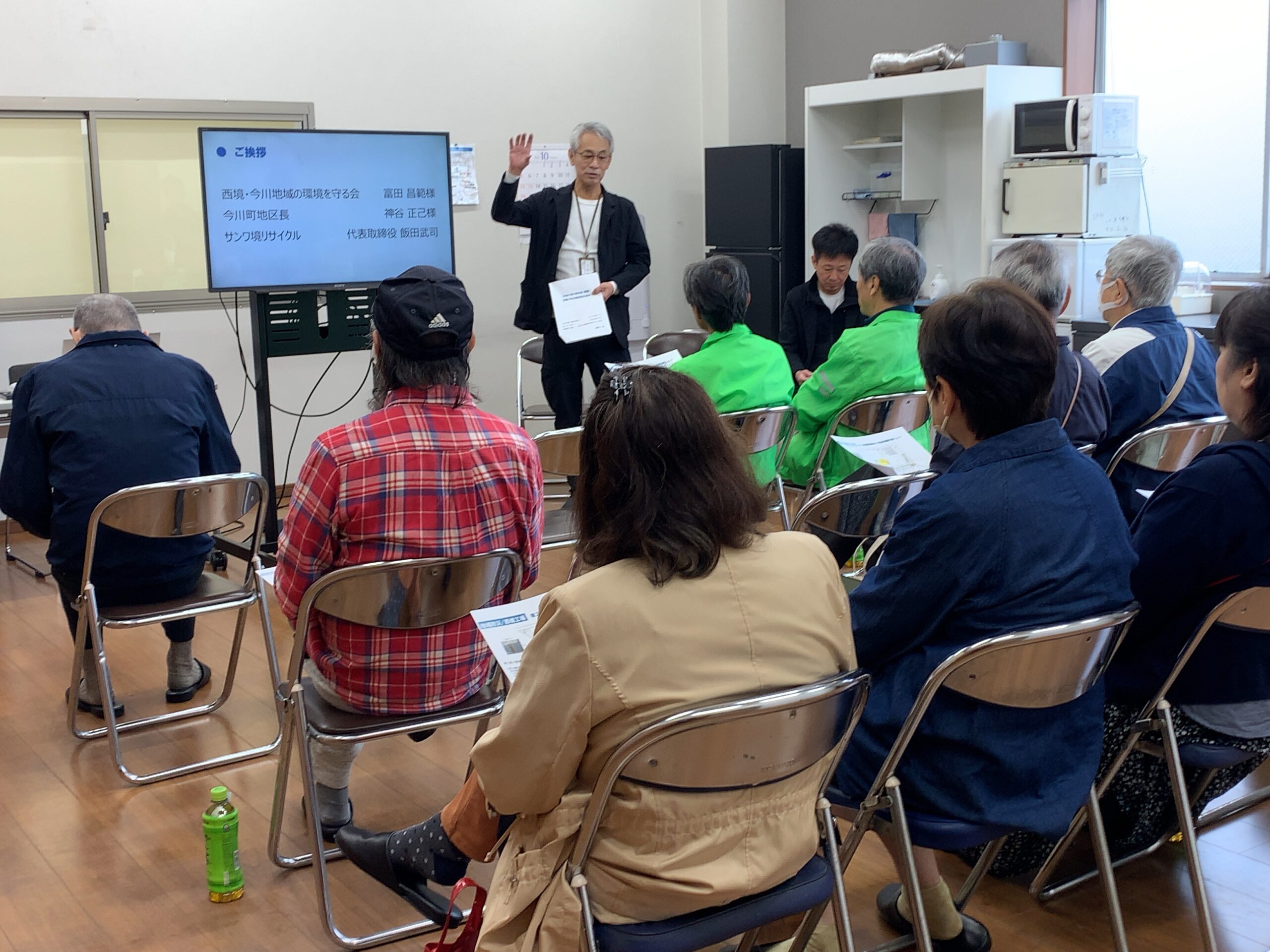 当日は雨がちらつく中ではありましたが11名の地域住民の皆様にご参加いただけ、弊社の事業内容や環境に関する取り組みの紹介や工場内見学を実施しました。
